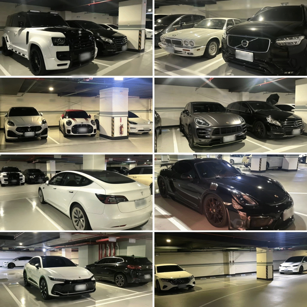 停車場裡近一半以上的車款不是代步車,而是豪車展間等級。